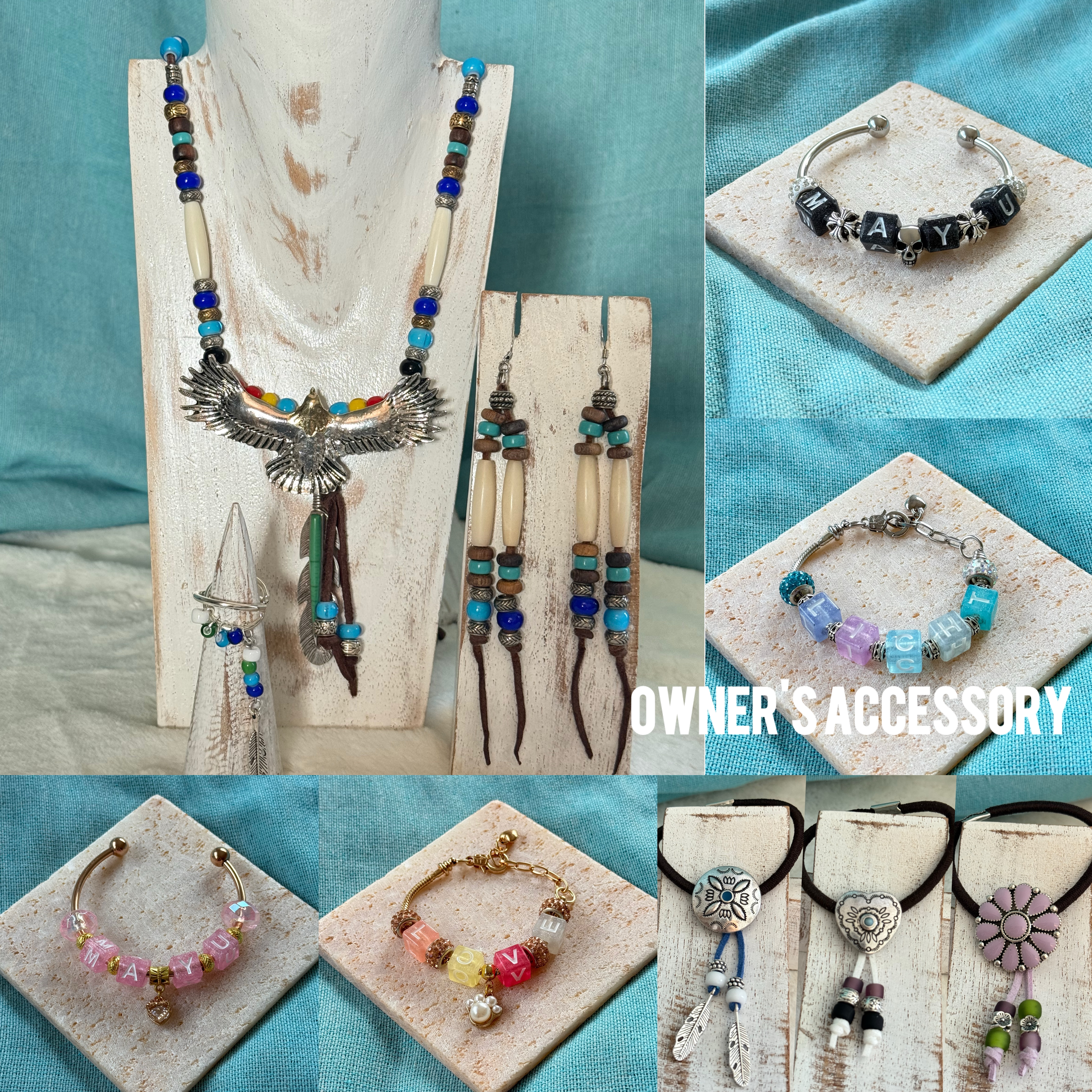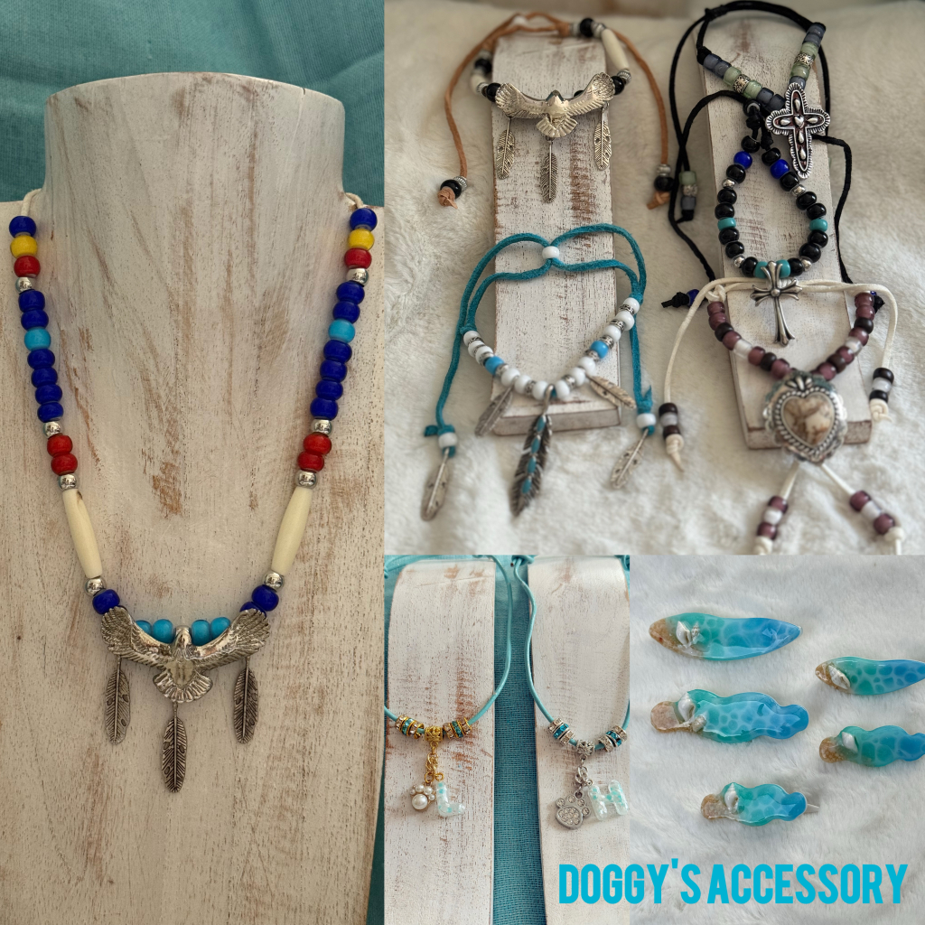 犬用インディアンチョーカーと、飼い主用アクセサリー。