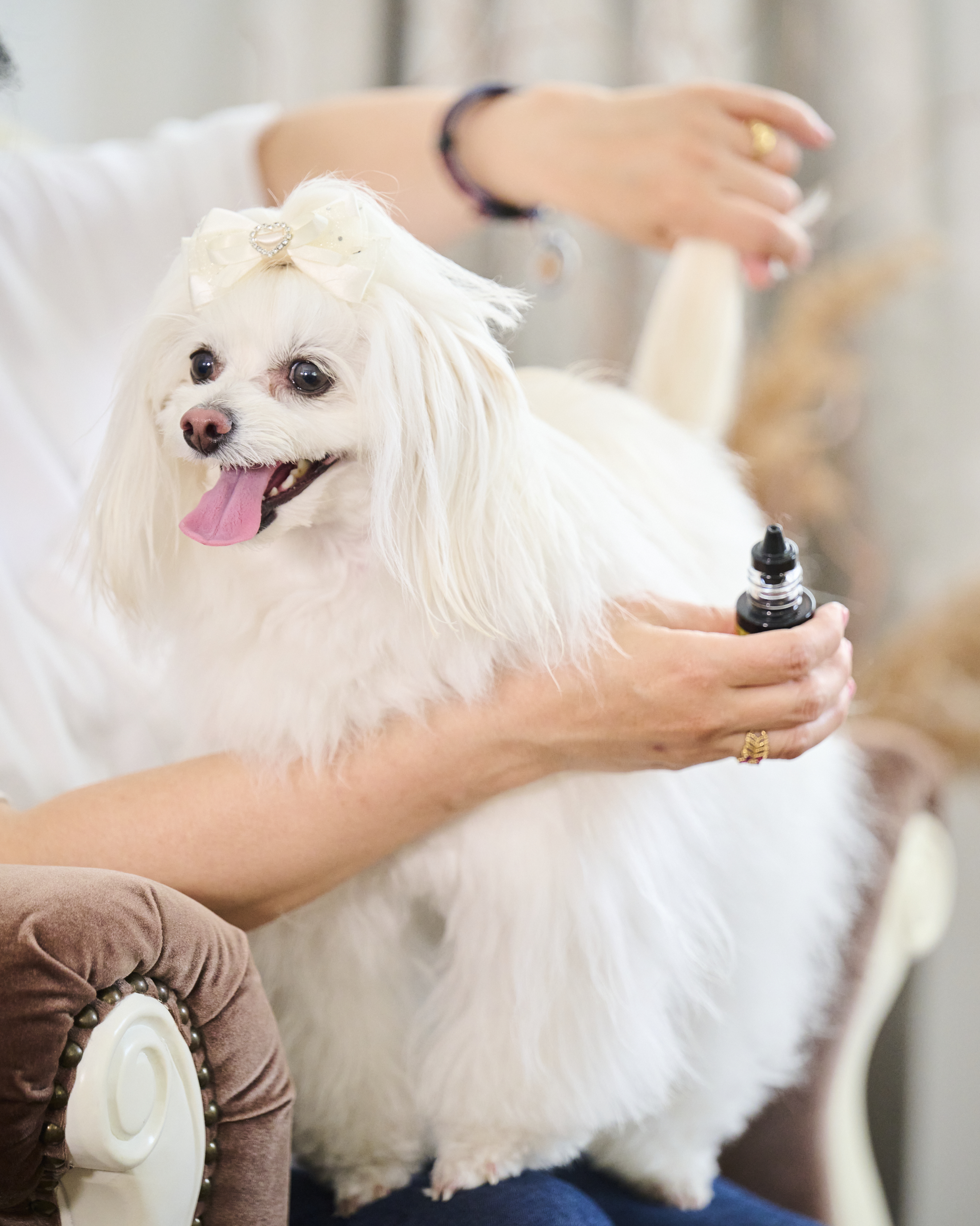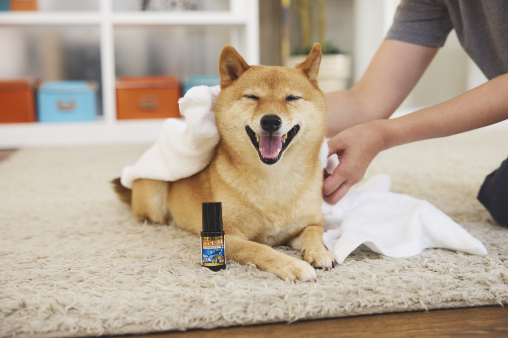 「サメキラリ」は、皮膚や被毛に直接塗って保湿。乾燥が気になる部分やシャンプー後、お散歩後のケアにサッとひと塗り。舐めても安心な設計で、皮膚・被毛の健康を守り、美しい毛並みへ導きます。